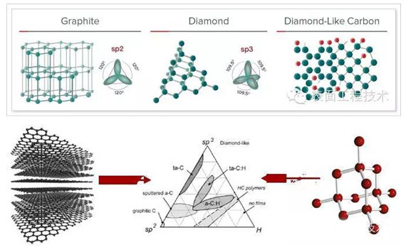 碳元素有3种杂化键,sp1、sp2、sp3。这三种键的不同含量组合,构成不同形态的分子结构,从而表现出不同的性质。